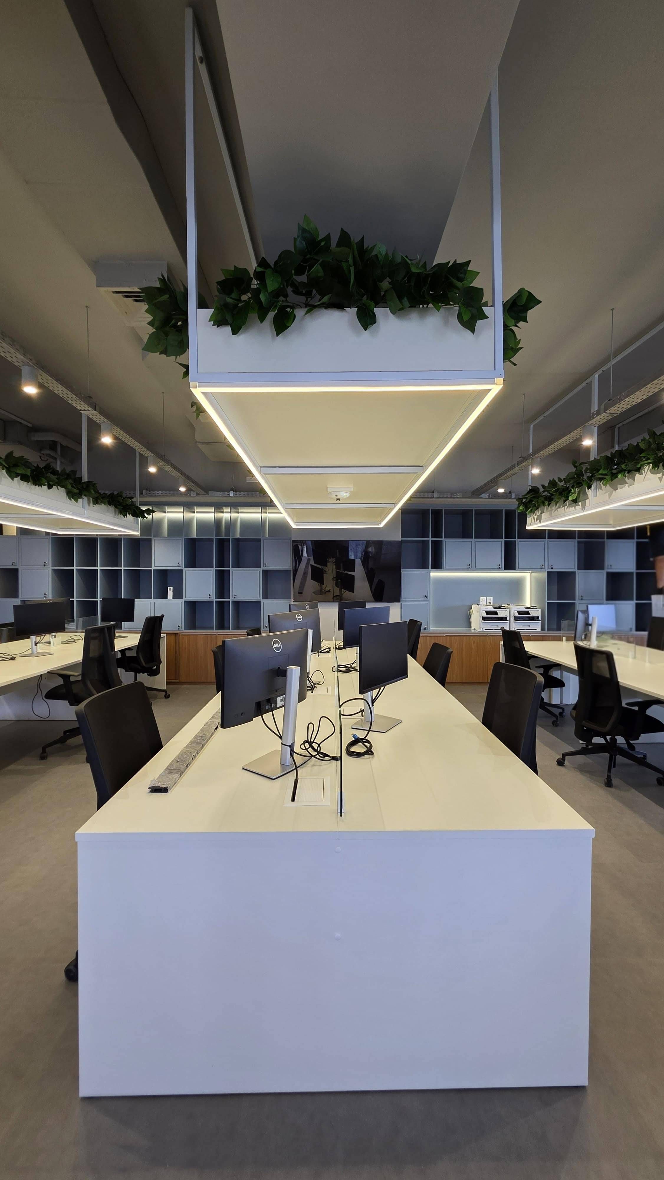 O fornecimento contemplou estações de trabalho, armários corporativos, cachepots decorativos e divisórias piso-teto, elementos pensados para atender à dinâmica intensa e às necessidades operacionais típicas do segmento logístico.