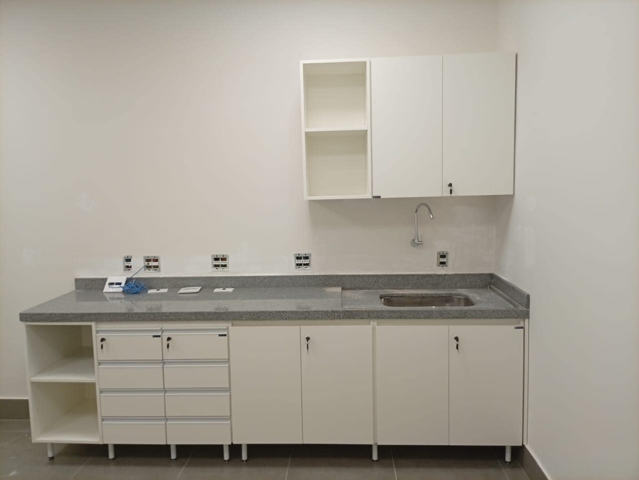 Mobiliário sob medida, adaptado ao layout e às exigências do espaço clínico;